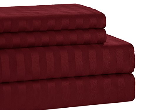 Addy Home 4 Piece T500 100% Egyptian Cotton Damask Stripe Set, Queen, Burgundy