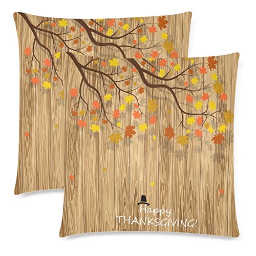 InterestPrint 2 Pack Thanksgiving Decor Autumn Leaves on Wooden Throw Cushion Pillow Case Cover 18x18 Twin Sides, Fall Maple Leaf Zippered Pillowcase Set Shams Decorative