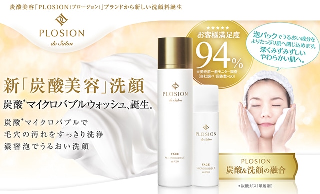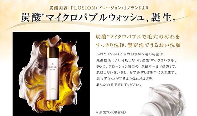 PLOSION 炭酸*マイクロバブルウォッシュは、肌への密着、汚れの吸着を研究してうまれた新発想の泡洗顔です。