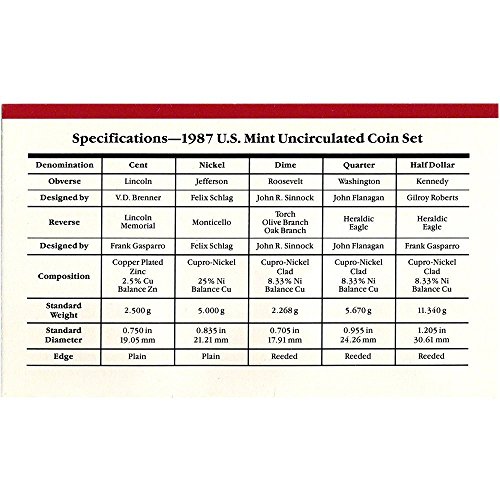 1987 Various Mint Marks P & D United States US Mint 10 Coin Uncirculated Mint Set Uncirculated