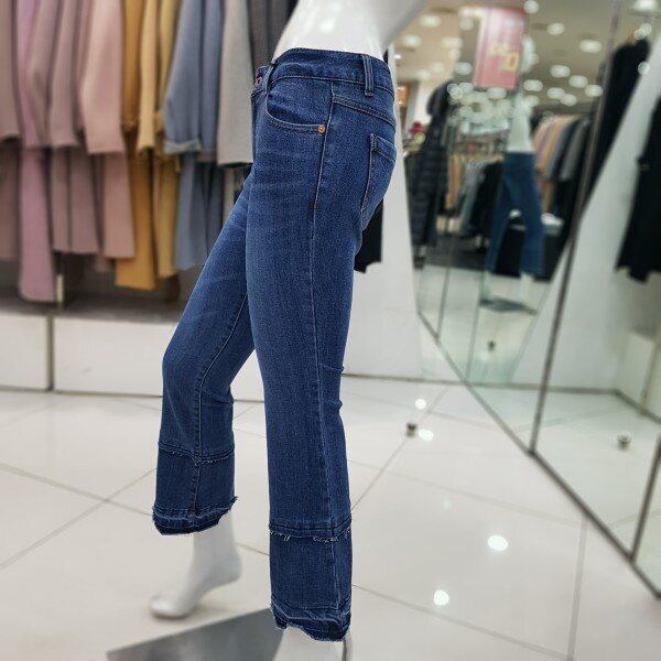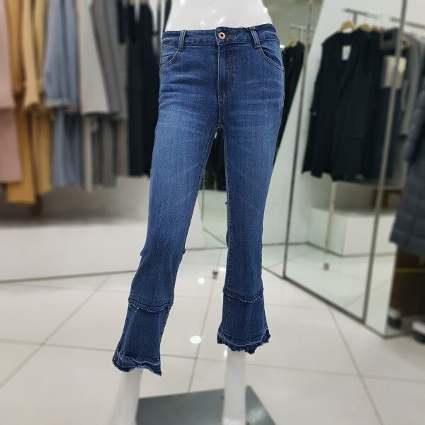 부츠컷 컷팅 러플 데님팬츠 입니다신축성이 좋고 다리가 날씬해 보입니다볼륨감은 살려주며 슬림하고 세련되게 연출하기 좋은 아이템 입니다