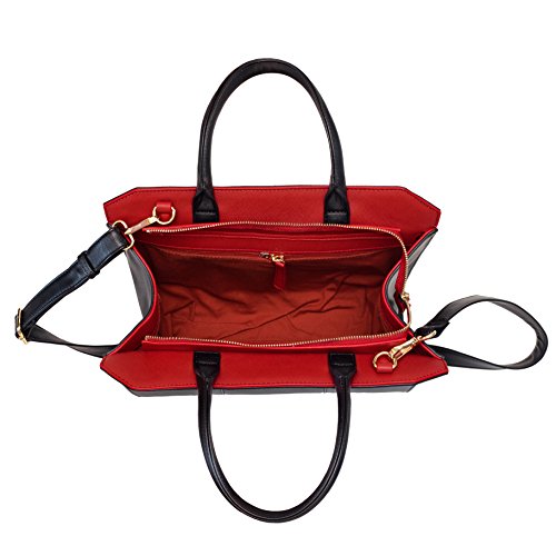 - CONTRASTING INTERIOR COLORS - Each Marsi Bond handbag has been to set to feature a solid non-printed interior color which complements it's dark or light colored exterior. Color combinations include black / red, red / black, brown / pink, pink / purple - maroon and grey-gray / pink. The interior colors can be seen under the simple to use magentic top flap, that can lock the bag closed without the need for a zipper, in both the main body of the bag and the large secret interior pocket.