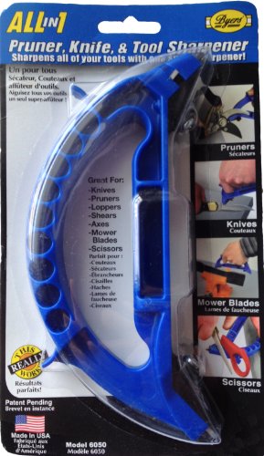 The All-in-1 Pruner, Knife, & Tool Sharpener is custom made for sharpening pruners, loppers, shears, knives, axes, hatchets, mower blades, multi-tools, scissors and any other single or double edged tool. Just a few strokes and your blade is super sharp.Feature