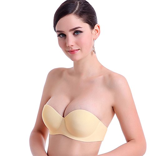 Omedichi Women's Strapless Clear Back Bra Black 32A