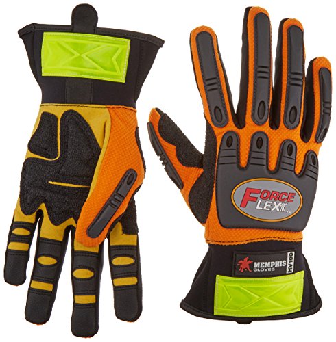 MCR Safety HV100M ForceFlex High Visibility Clarino Synthetic Leather Gloves with Reflective Material Cuff, Orange/Black, Medium, 1-Pair