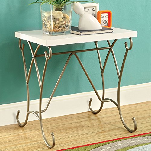 Studio : Furniture of America Publisher : Furniture of America Product Description A romantic piece that will be the finishing touch to creating a royal-inspired bedroom, this nightstand pairs beautifully as a delicate piece. The metal framework swirls and twirls in champagne while a white faux marble top ensures ample bedside surface space.Set includes: One (1) nightstandFinish: Champagne and whiteTwo-toned designSwirling metal leg supportsWhite faux marble topMatching carriage bed, bench and vanity set sold separatelyPaired chairs available, sold separatelyAll dimensions are approximateNightstand dimensions: 22 inches high x 22 inches wide x 18 inches deepFurniture Pattern: SolidFurniture Room: BedroomProduct Features: Includes HardwareStyle: Contemporary, ModernMaterial: MetalAssembly: Assembly RequiredSize: No DrawersFinish: Goldtone Finish, White FinishColor: White, Gold Assembly Required 0