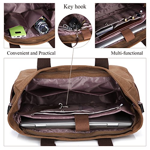 -. Feature : MATERIAL: Durable 100% cotton washed canvas. / CLOSURE: Top Zipper Closure. / DIMENSIONS: 13.78''(L) x 3.94''(W) x 11.02''(H), fits up to 14" laptops, easy to carry A4 size book. / POCKETS: 1 Main compartment with 1 Key hook, 1 Tablets pocket, 1 Zipper pocket, 4 Open Item Pockets, 2 Pen slots. 3 Exterior open pockets, 4 Exterior zipper pocket. / FEATURES: Decorative silver-tone hardware, detachable shoulder strap and so many pockets. Easily carry your book, phone, wallet, cosmetic, IPAD, umbrella and other daily things.
