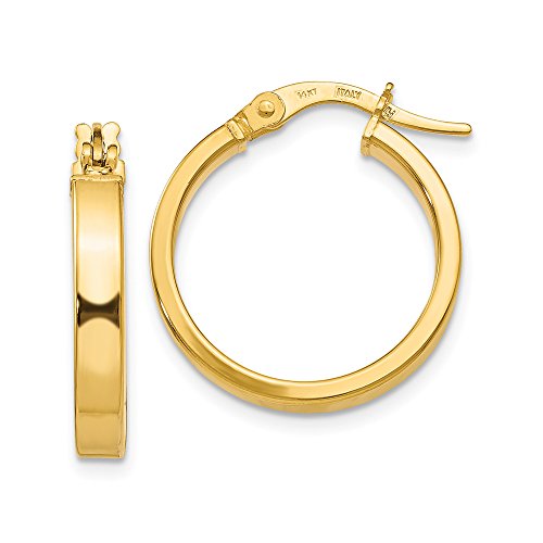-. Title : 3mm x 18mm (11/16 Inch) Polished 14k Yellow Gold Flat Edge Round Hoops