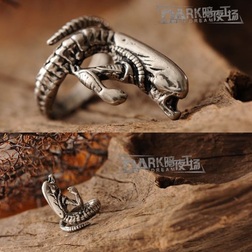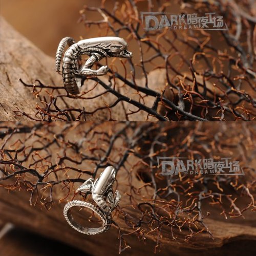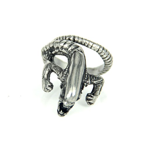 JK Alien monster Punk Gothic jewelry Silver/Gold Color Metal Adjustable Fashion Statement Ring (Silver)