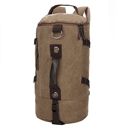-. Feature : Retro Duffel Cylinder Bag Canvas Travel Backpack Hiking Shoulder Handbag. / The main pocket with the dual zippers closure, easy to open and close, and the inside of the pouches are wearable and durable. / In front of the bag has a hidden zipper bag, daily necessities can be accommodated. / This duffel bag has a computer bags inside, you can better protect your computer. / Multi-purpose uses: Handbag, backpack, shoulder bag, satchel. Perfect for outdoor, working, traveling, hiking, camping, school and daily use.