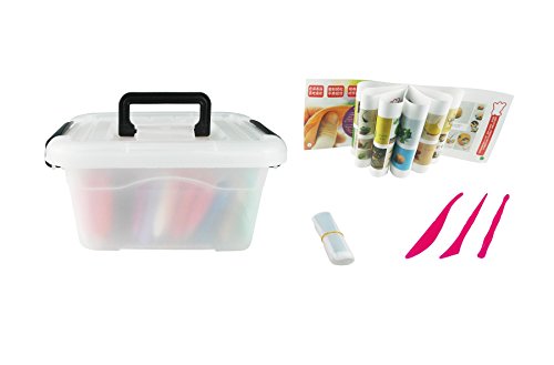 What you get: pack of 24 modeling clay in 24 colors (0.7 oz per one), a project booklet, some small tools to help with shaping and decorating, sealed bags to keep usused clay.