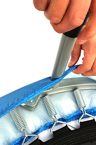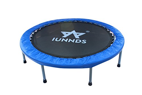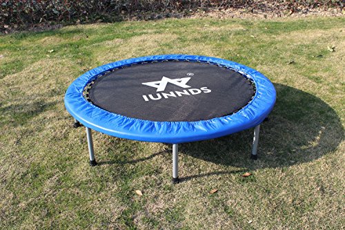 - Trampoline has a durable mat and tubular steel frame with a durable coated finish. - Rugged all-steel frame construction, and heavy-duty rebounding surface with safety pad - Don't be fooled by its easy open and close mechanism - this folding trampoline supports up to 220 pounds! - Easy for travel or quick storage, just fold up the frame and close it! - FREE storage bag included for size 38"!