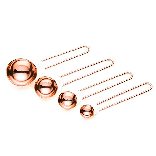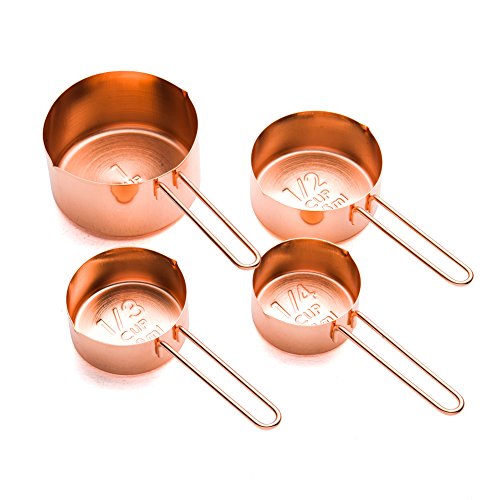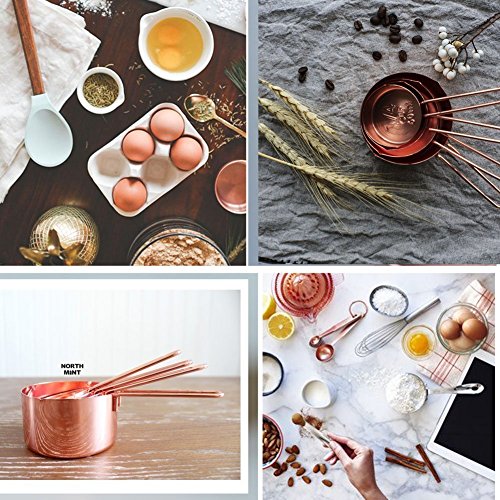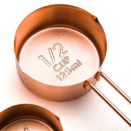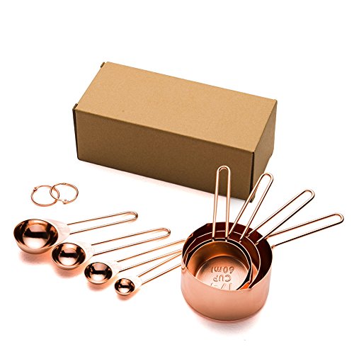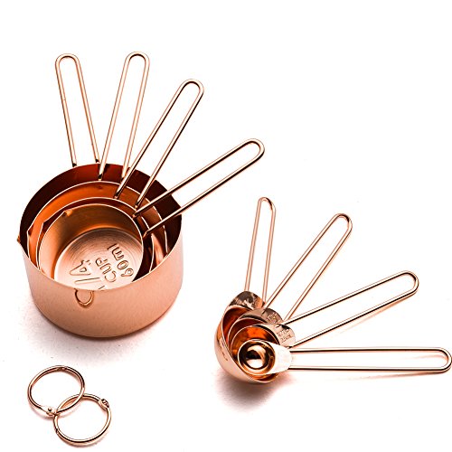 Copper Stainless Steel Measuring Cups and Spoons set of 8 Engraved Measurements, Pouring Spouts...