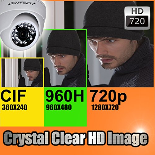 -. Feature : ➥ This camera have 2 MODE for video output: 720P AHD and 960H ,Please check what type of video mode is required for your installation, for example if you want to connect the camera directly to a TV or to a D1 VENTECH DVR (or any brand analog DVR) you must select CVBS mode , but if you want to connect the camera to a AHD VENTECH DVR (or any AHD DVR) you must select AHD mode. / ➥ The 720P HD Security Camera is a high resolution 1280 x 720 1MP camera which provides excellent video quality and clarity / ➥ USE INDOOR and OUTDOOR ➥ 24 IR LEDs view 65FT in the dark, 2.8 mm Wide Angle Lens provides a field of 90° view / ➥ This camera has integrated the MULTI-SYSTEM TECHNOLOGY, which allows the user to switch between NTSC and PAL standard video, so it can work in any country around the world. / ➥ Default MODE is 720P AHD, it is compatible with 720p, 1080p AHD DVR like ASIN: B015HSSQAA or can change to regular anolog mode
