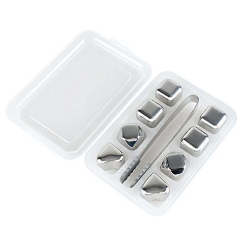 -. Feature : Short frozen time. It only takes 3 hours to chill the whiskey stones while It takes you 6 hours to freeze water into ice of the same size. Though it would not be as cold as ice. / Safe to use and Sanitary. Made of FDA-approved 304 grade stainless steel, BPA free. Dishwasher safe. Tasteless, odorless, does not corrode. Ordinary tap water ice cubes contain germs and bacteria which you consume when the water mixes with the drink. And the Water ice cubes can easily get contaminated over time. / Non Melting Reusable Ice CUBE TO PRESERVE THE DRINK'S FLAVOR: Reusable ice cubes chill your favorite beverages and don't worry about the ice cubes melting and watering down your drink. - If you drink Whiskey, Soft Drinks, Vodka, Wine, Scotch, etc. - YOUR LAST SIP WILL ALWAYS BE AS PERFECT AS THE FIRST. If you drop them in really hot water for a few minutes, you can put them in your coffee to help keep it warm! / Perfect for many occasions! Such as Valentine's Day, cocktail party, anniversary, Christmas, birthday etc. Also best as gifts for scotch or bourbon lovers. / The rounded corners won't scratch the glass or hurt you while drinking. Very easy to wash and clean.