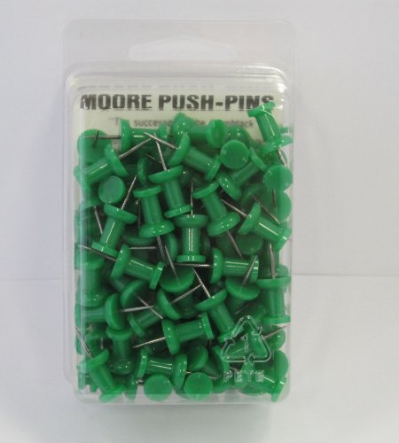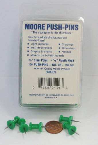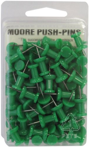 Moore Plastic Head Push Pin, Green, 100 Per Box (2P-100-GN)