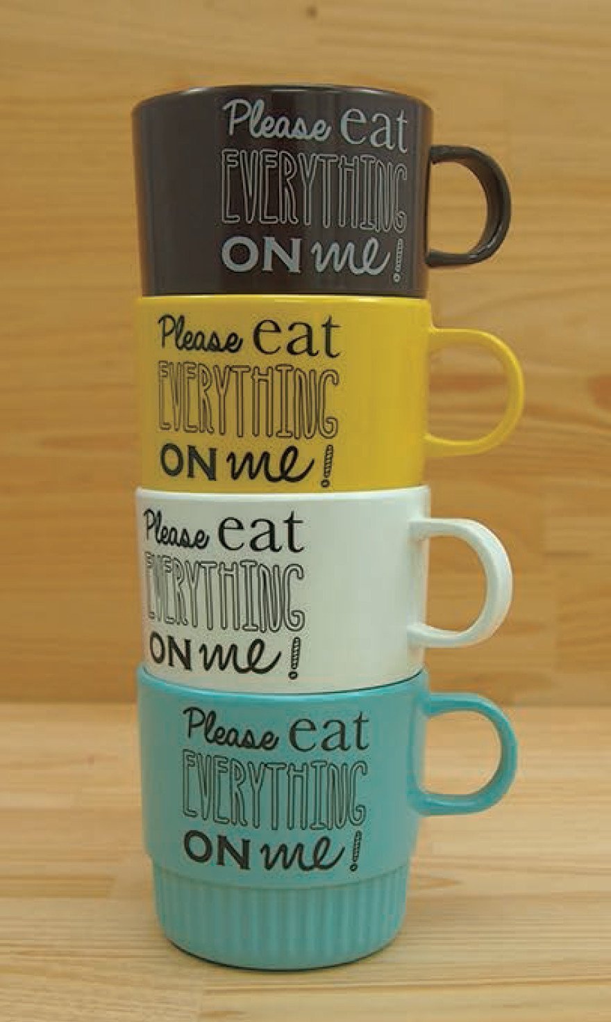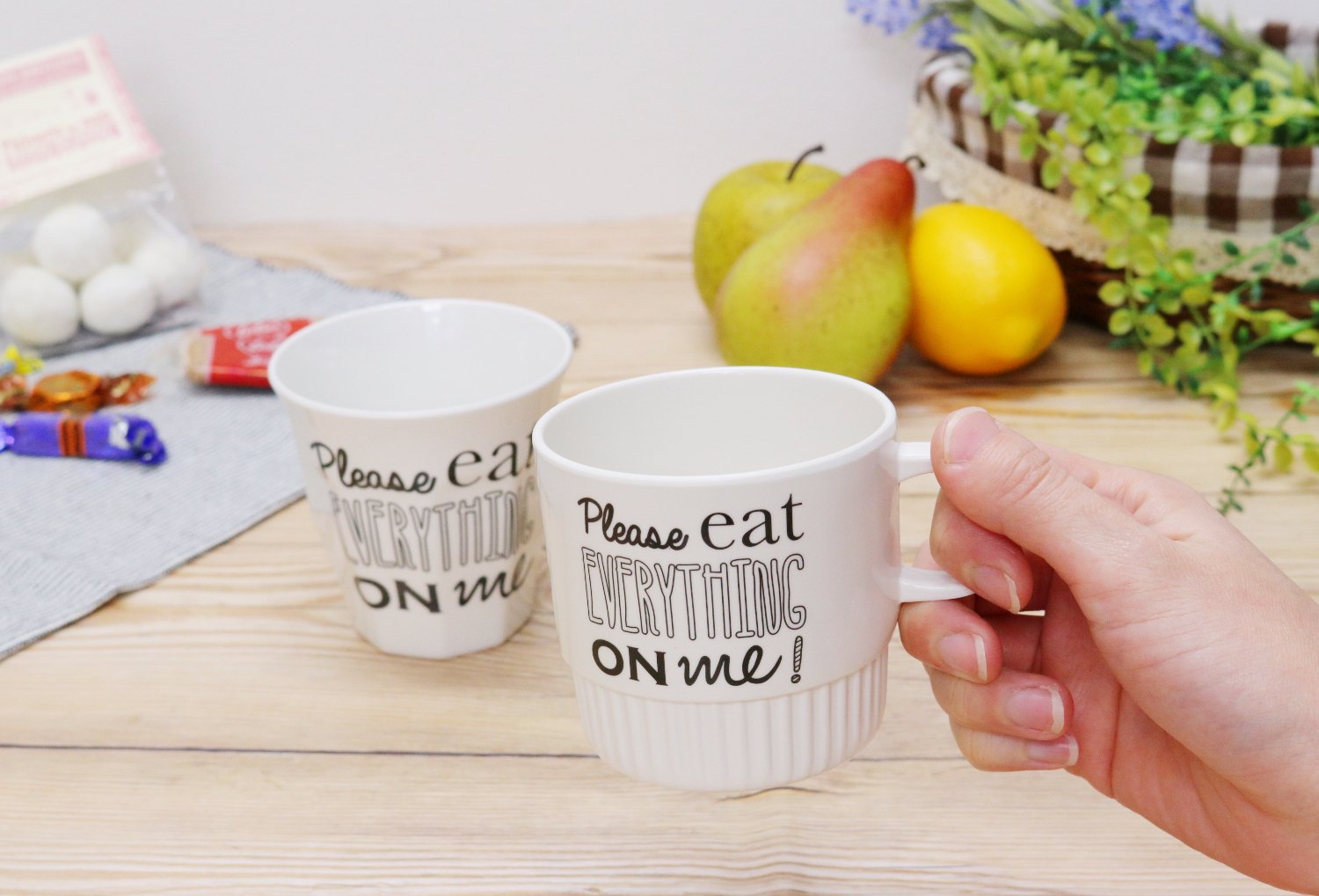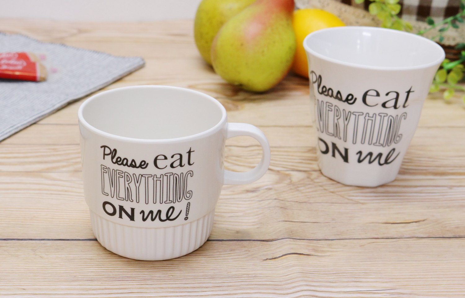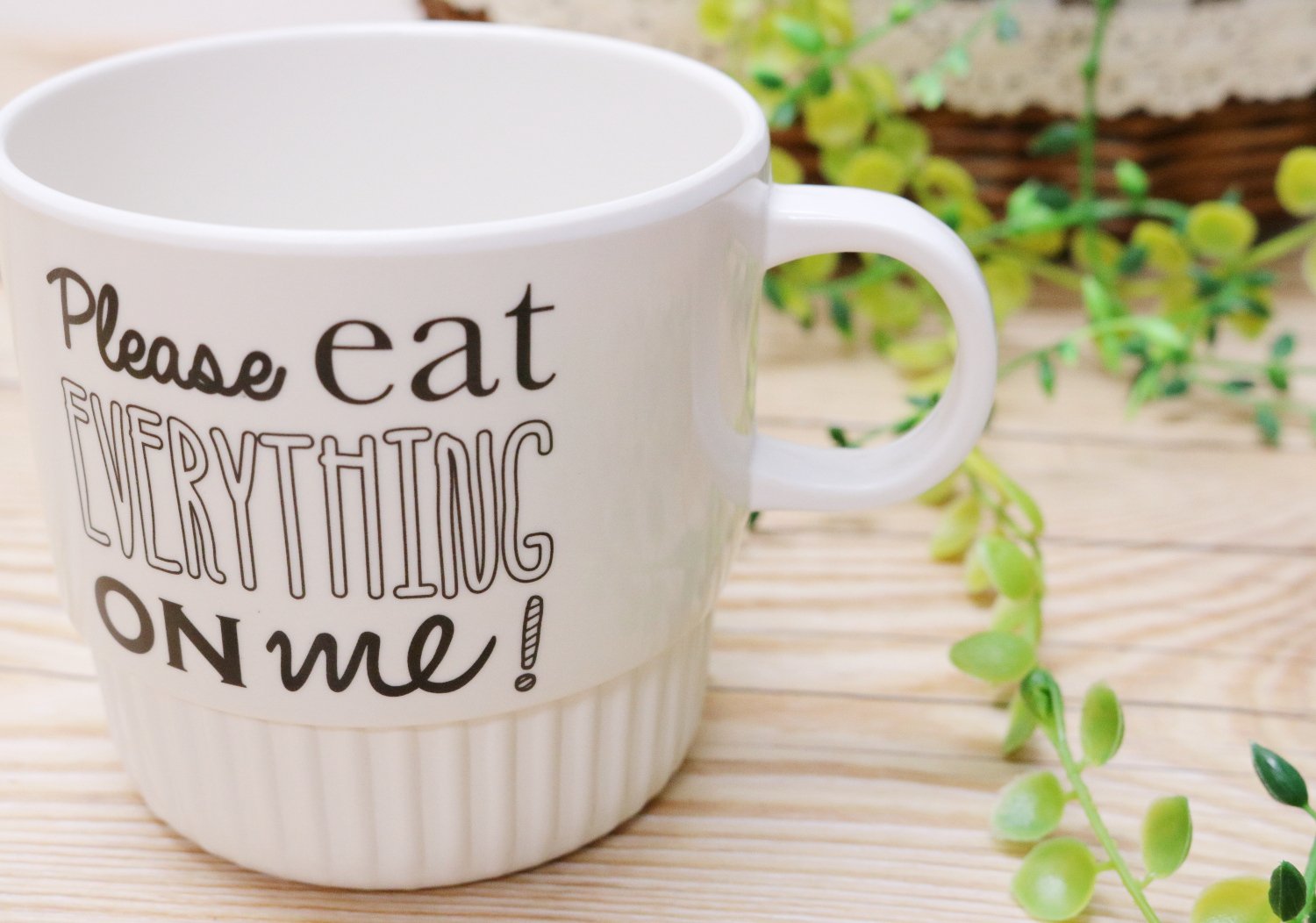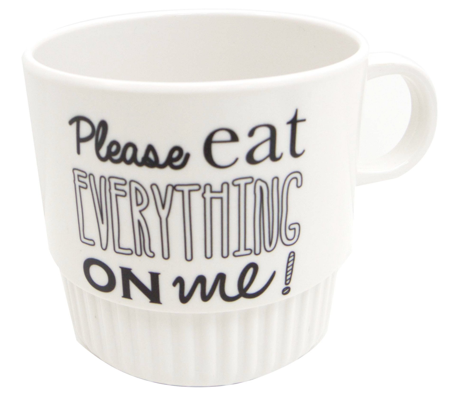 Primal Designs mug melamine stacking mug PLEASE EAT EVERYTHING ON ME milk white 230ml MP-550