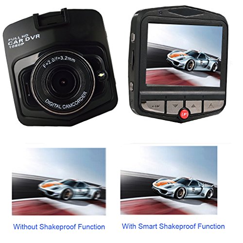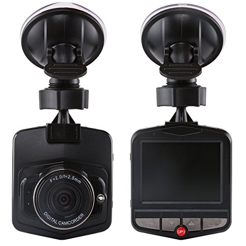 -. Feature : iHomor 2.4-Inch Windshield/Dashboard Car DVR , HD Dash Cam, DVR Accident Video Recorder with 170°View Angle, Full HD 1080P with G-Sensor for Auto-Recording: Easy installation with a lockable suction cup mount, providing the flexible choices of recording the vehicle driving history at the windshield or dashboard. Dimensions: 2.8x2.5x1.3-Inch. Very portable size with a 2.4" HD display screen, easy to store or carry. / Crystal clear full high definition video quality. Video resolutions: 1920x1080, 1280x720, 640x480 Video format/Video encoding/Audio encoding: AVI/H.264/AAC. Low light compensation, ensuring high video quality even for driving in the evening. One-button picture taking at the resolution of 5M pixels. Camera view angle of 170° with a rotatable arm, providing very wide view. / Different video/audio recording modes for different needs: Record video with the choices of 480p, 720p and 1080p at 30fps frame rate, Video frame rate: 30fps . Internal storage: 32M NORFLASH Still picture/photo resolution:5M pixels. External Storage support: Up to 32GB TF card time lapse recording, one-button emergency video recording and saving, one-button audio recording on/off. Manually adjustable brightness, contrast, white balance settings. / Smart and convenient recording/monitoring: Automatic ignition/motion/crash/vibration detection and recording with G-sensor, monitoring while parking, automatic display off for energy saving, automatic device off after engine off. Low light compensation ensures good video recording quality even in the evening / User friendly and simple operation with multiple languages and several buttons. Supported user interface languages: English, Spanish, Portuguese, Russian, Simplified Chinese, Traditional Chinese. Supported computer operating systems:Windows XP/Vista/7/8.The 32GB TF card in the package provides approximately a total of 8 hours of 1080p video recording storage (or even longer for videos with resolutions lower than 1080p).