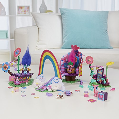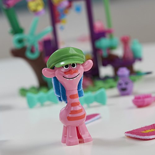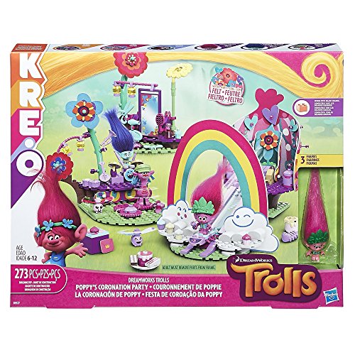 "Go beyond bricks with KRE-O creative construction sets featuring materials that help inspire kids' imaginations and creativity. Besides bricks, Fabrical felt material adds soft, vibrant textures, and Shimmarama sheets bring color and shape with their flexible design. Kids can flip and swap pieces, and hang materials with the colorful pegs for their own customized looks. The DreamWorks Trolls Poppy's Coronation Party set lets kids build and decorate a scene to celebrate this special day! Style Poppy's throne, slide her down the slide on her skitter bug for a grand entrance, spin figures on the dance floor, treat guests to customized cakes, swap their hair at the vanity, and give them wild hairdos with the Whirly Hairstylin' stick, brush, and other accessories. Includes DreamWorks Trolls Poppy, Branch and Cooper figures, 3 critter figures, and accessories.