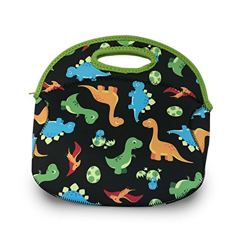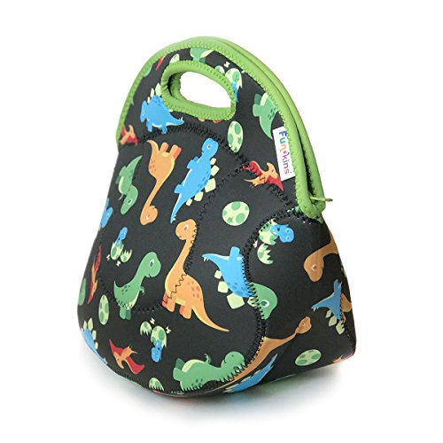 FUNKINS Washable, Insulating Neoprene Lunch Bag for Kids, spacious to hold reusable lunch containers, great for waste-free lunch, DINOSAURS