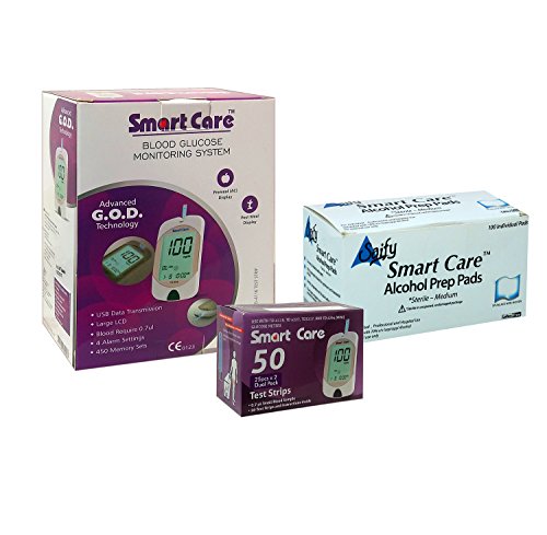 -. Feature : • STARTER KIT: Smart Care Diabetes meter, 60 test strips, 10 twist off lancets (30g), lancing Device, 100 Preps wipes, manual & carry case / • EASY TO USE: Preferred diabetic starter kit for patients, no coding required, alarm reminders with 450 Memory Sets with date & Time. / • QUICK RESULTS: Fast 5-second test time and small 0.7 µL blood sample. / • QUALITY: LONG LASTING & FRESH EXPIRATION DATES. / • SATISFACTION GUARANTEE: We provide 100% customer satisfaction to each Smart Care product.