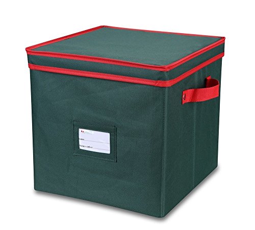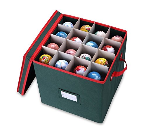 Primode Holiday Ornament Storage Box Chest, With 4 Trays Holds Up to 64 Ornaments Balls, With Dividers (Green)