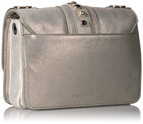 Studio : Vince Camuto Publisher : Vince Camuto Binding : Apparel Product Description Studs, glamour, structure, what more could you want in a shoulder bag this crossbody may look tough, but don't let it fool you. Complete with triple compartment on the interior, snap closure, and comfortable chain strap, this light weight crossbody will glam up any ensemble. 0