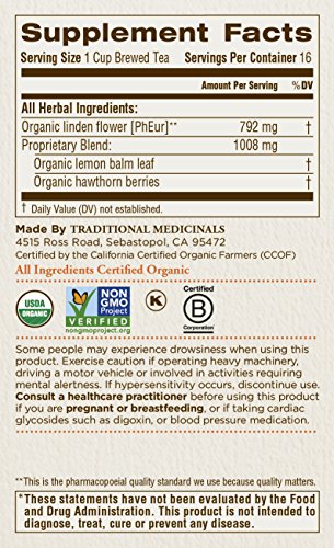 -. Title : Traditional Medicinals Organic Linden Flower with Hawthorn and Lemon Balm Tea, 16 Tea Bags