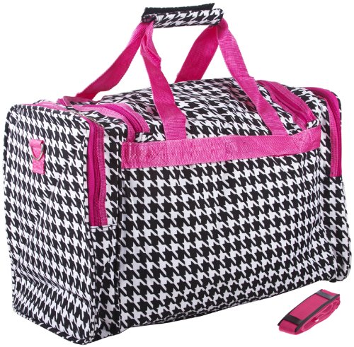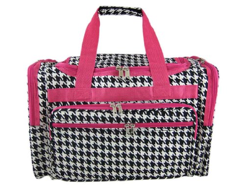 -. Brand : World Traveler -. ClothingSize : 19-inch -. Color : Houndstooth - Pink -. Department : womens -. EAN : 0763598183516 -. Feature : Adjustable, detachable non-slip padded shoulder strap / U-top opening provides easy access to roomy zipper secured main compartment / Metal feet allows stabiity to bag when setting down and provides bag floor not to touch floor directly to get dirty / Front exterior zip pocket with two exterior end zip pockets / Silver pewter hardware -. Model : T19-606-F -. MPN : T19-606-F -. NumberOfItems : 1 -. PackageQuantity : 1 -. PartNumber : T19-606-F -. ProductGroup : Apparel -. ProductTypeName : LAGE -. Size : 19-inch -. Title : World Traveler Pink Houndstooth Duffle Bag 19-inch -. UPC : 763598183516