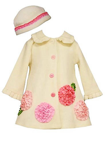 -. Title : Bonnie Jean Little Girls Bonaz Ivory Fleece Coat & Hat, Ivory, 0-3M - 4T