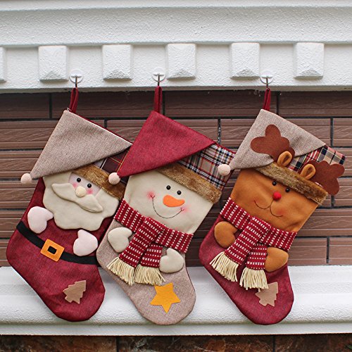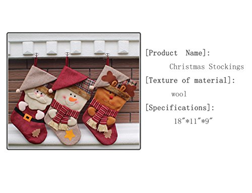 Xiouli Large 3 Pcs Set Christmas Stockings 18"11"9" Cute Santa's Toys Stockings 17137mz(Hat style-3D)