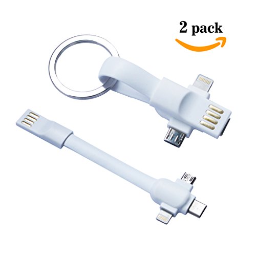 -. Title : PYSOON Portable 3-in-1 Magnetic Keyring Charging Cable for iOS,USB-C and Android Devices (Micro-USB)/ Lightning to USB Cable - White - 2 Pack