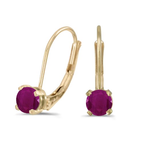 -. Title : 14k Yellow Gold Round Ruby Lever-back Earrings