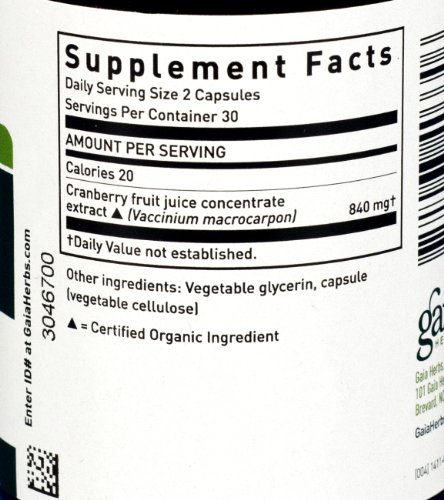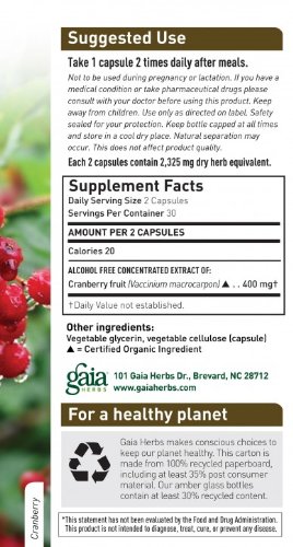 Studio : Gaia Herbs Publisher : Gaia Herbs Binding : Health and Beauty Product Description Gaia Herbs Cranberry Concentrate optimizes urinary tract health. Cranberry has a long history of use - now backed by modern science - for supporting the health of the urinary tract. Made from organic cranberries, Gaia's Cranberry Concentrate is a convenient alternative to eating whole cranberries (rich in antioxidants), with one serving providing the nutritional equivalent of 2,325 mg of fresh berries. Use Cranberry Concentrate daily to support urinary health. 0