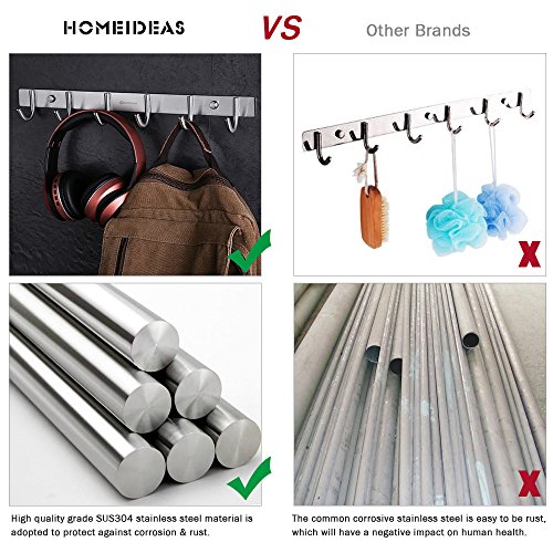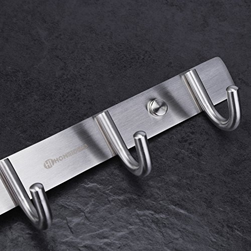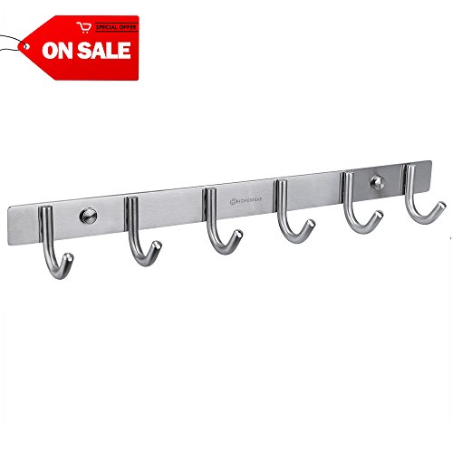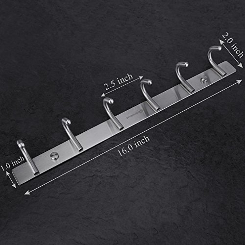 HOMEIDEAS 16-Inch Coat Hooks SUS304 Stainless Steel Wall Mounted Coat Rack Towel Hook with 6 Heavy Duty Hooks,Wall Mount,Brushed Nickel