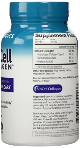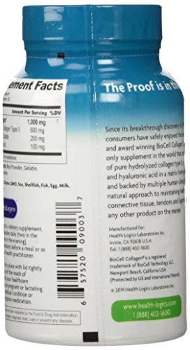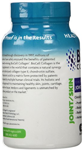 -. Binding : Health and Beauty -. Brand : Health Logics -. Feature : 2 bottles of 120 Capsules / BioCell Collagen is the award winning and patented skin & joint supplement proven to work in multiple human clinical trials. BioCell Collagen contains a natural synergy of hydrolyzed collagen type II, chondroitin sulfate, and hyaluronic acid in matrix form that cannot be found in any other supplement / Clinically shown to reduce joint stiffness and discomfort. Promotes joint lubrication and mobility. Promotes cartilage, tendon, ligament, and connective tissue health / Clinically shown to reduce fine lines and wrinkles, and reduce skin dryness by 76%. Clinically shown to increase skin collagen (type I & III) and blood microcirculation in the face / Made in the USA in a GMP-certified facility. Winner of Better Nutrition's 2014 Best of Supplements Award. Winner of Frost & Sullivan's Best Joint Health Ingredient Award, Since 1997, millions of people around the world have experienced the benefits of BioCell Collagen. Backed by clinical trials, BioCell Collagen has been shown to help the body maintain healthy connective tissues, flexible joints, and younger looking skin. It contains a patented composition of hydrolyzed collagen type II, chondroitin sulfate, and hyaluronic acid in a naturally-occurring matrix form that cannot be found in any other supplement. Multiple human clinical studies have validated BioCell Collagen's safety, efficacy, and rapid absorption into the body. In addition, a recent study presented at the 2014 International Society of Sports Nutrition Conference demonstrated that BioCell Collagen aids in the protection and recovery of musculoskeletal tissue during sports activity, making it a highly effective performance recovery supplement -. Label : Health Logics -. Manufacturer : Health Logics -. ProductGroup : Health and Beauty -. ProductTypeName : HEALTH_PERSONAL_CARE -. Publisher : Health Logics -. Studio : Health Logics -. Title : Health Logics BioCell Collagen Joint and Skin Care 120 Capsules