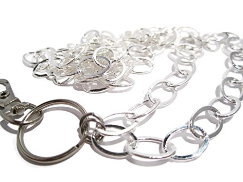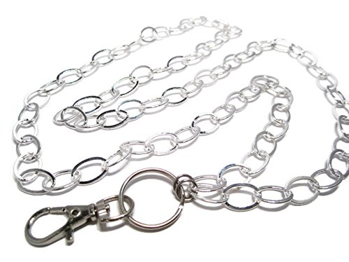 The chain is 33" long and measures approximately 18.5" from the back of the neck to the bottom of the clasp/clip. Includes a 3/4" split key ring and a 1.25" swivel top lobster claw clasp/clip.
