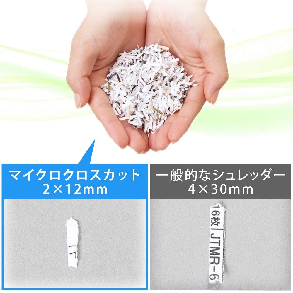【強固なセキュリティ対策】一般的なクロスカット(平均4×30mm)に比べ、マイクロクロスカットはより細密な2×12mm。情報が読み取りにくく、重要情報の流出を防止できる。