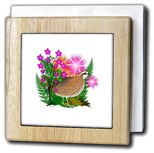 3dRose nh_48775_1 Ferns, Fire Flowers and a Quail Wall Art, Natural
