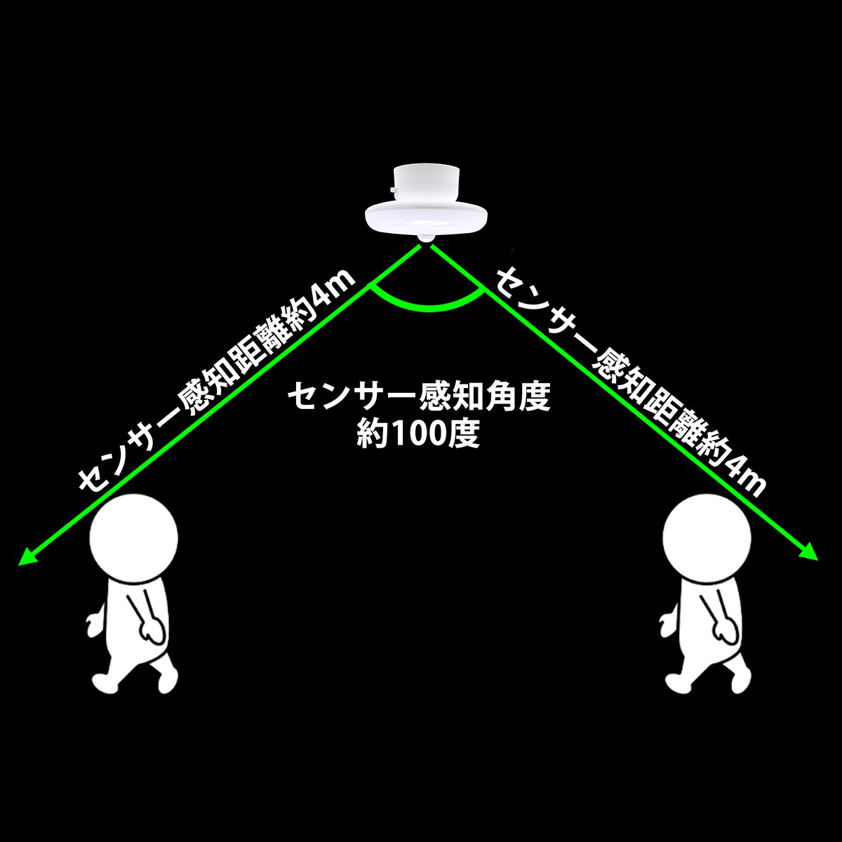 The surroundings are dark, lit when people 's movement is sensed within a distance of about 4 m.