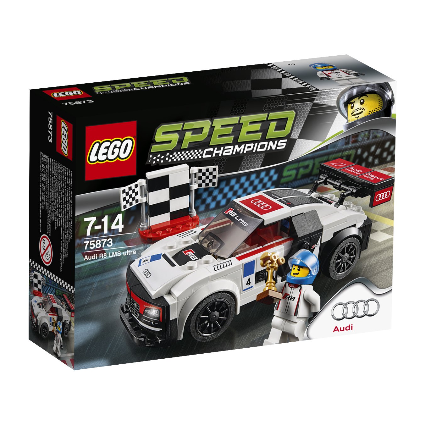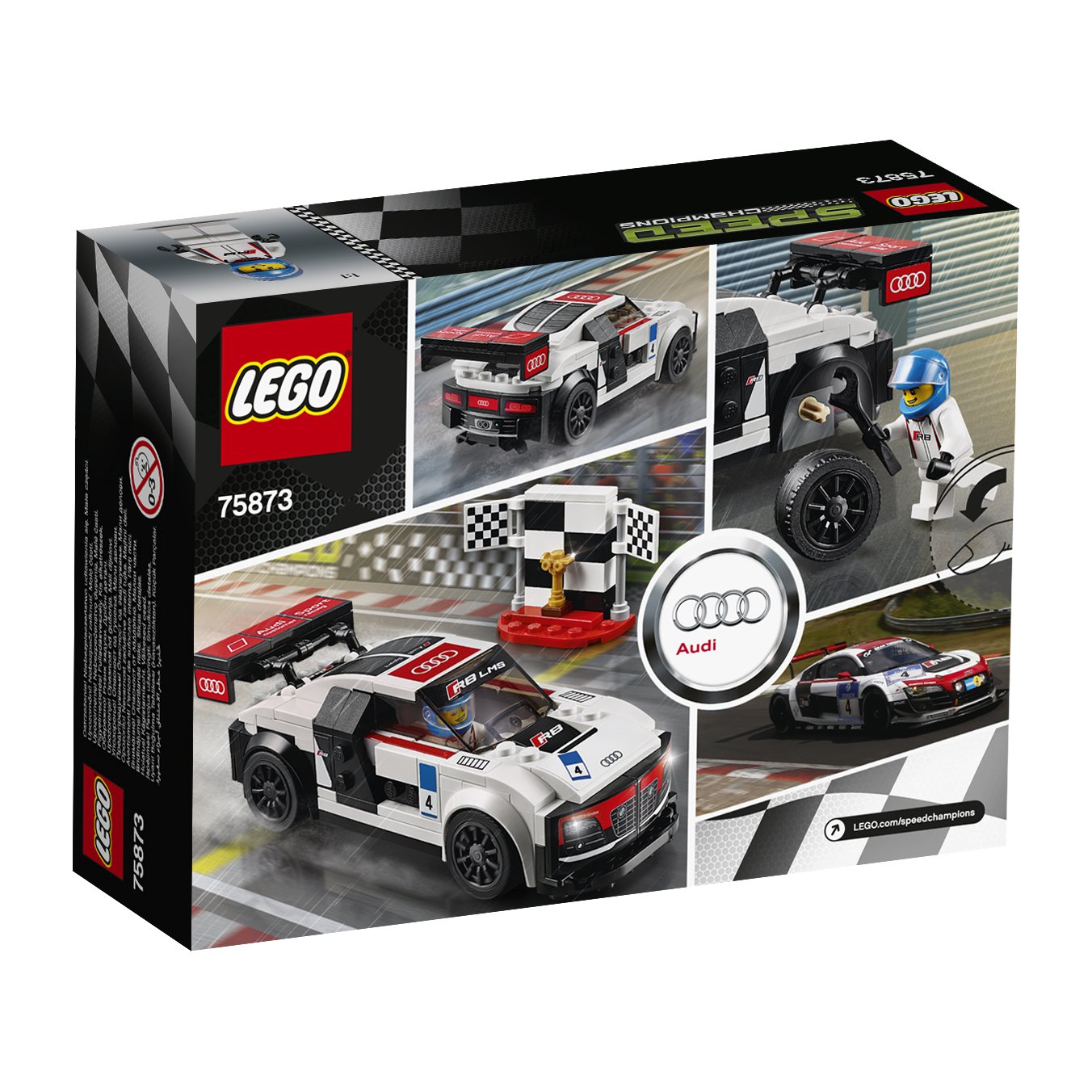 Run the LEGO ® Speed Champion Audi R8 LMS at the speed that makes the truck on fire.