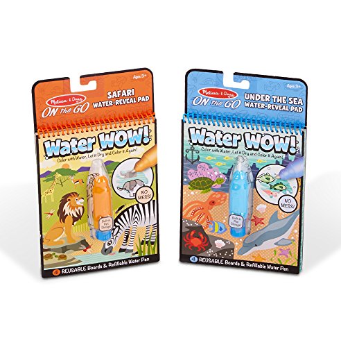 No-mess painting for kids! This exciting paint-with-water coloring book includes four reusable pages and a refillable water pen. Simply use the pen to color in each scene--details and vibrant color appear with every stroke! Then let the page dry to erase the pictures and fill it in again and again. This underwater-themed book includes four scenes to color, and a search-and-find activity for each scene. The chunky-sized water pen is easy for kids to hold and stores neatly right in the front cover, so Water WOW! books make ideal travel activity books and travel toys for kids.Feature