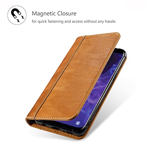 -. Feature : ProCase flip wallet case for Galaxy S9 Plus / S9+, genuine leather top quality exclusively designed for Samsung Galaxy S9 Plus 2018 (SM-G965F). Please check the model type before purchase (NOT compatible with any other devices) / Exquisite craftmanship made from premium genuine vintage leather offers soft nature feel; elegant leather texture provides a classic and luxury look / 2 card slots for your cards IDs also features cash money pocket; Magnetic lock closure secure your personal belongings in the case / Build-in kickstand with multiple horizontal positions, ideal for entertainment or streaming / Durable, shock resistance on corners and edges; Full access to all features (Cameras, Speaker, Ports and Buttons)