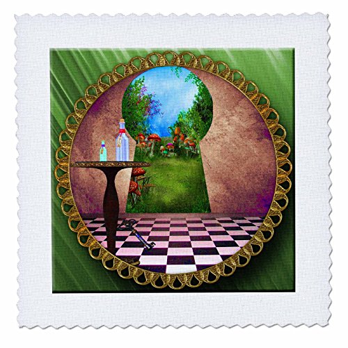 3dRose qs_128860_4 Through The Keyholes Alice in Wonderland Art Checkered Floor Bottle of Magic Water Quilt Square, 12 by 12-Inch