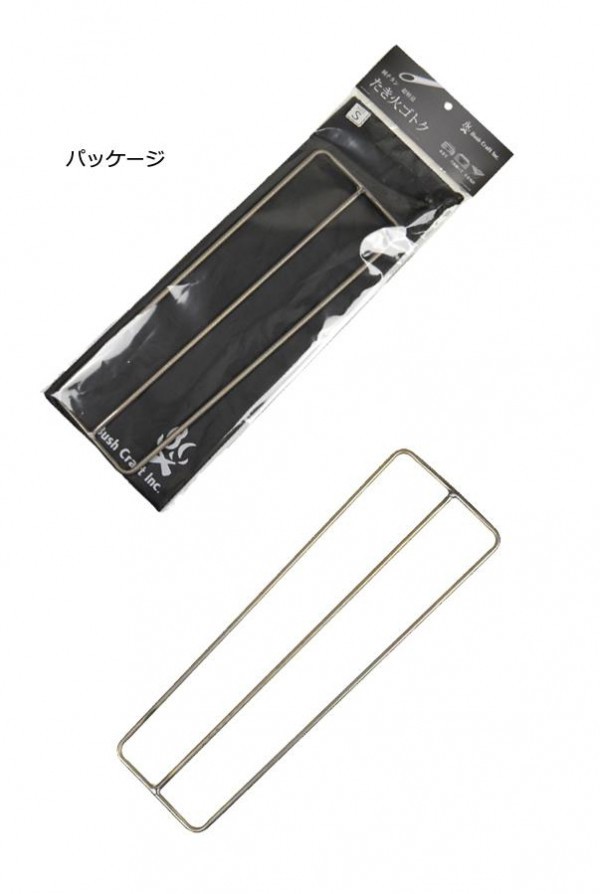 本品はSサイズとなり、ソロ~ペアのキャンプに適したサイズ感です。片側が少しだけテーパー状に狭まっているのは、パッキングの際に荷物の隙間に滑り込みやすく片側が狭いほうが柔軟な対応が可能なためです。直火は勿論、お手持ちのたき火台に適合するサイズでしたら焚き火台の上で調理するためのゴトクとしてもご利用いただけます。 |