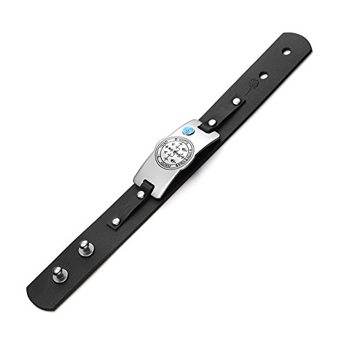 Absolutely Unique and Special Amulet Bracelet. Created as Archangel Uriel Sigil Magic Powers Amulet and Adorned with Round Cabochon holding Simulated Turquoise Crystal. Each of these Unique Bracelets are made from Genuine Leather and may be adjusted to fit smaller or bigger wrists. This Bracelet is made from Black Genuine Leather and Looks Amazing. Bracelet Tag is Curved to fit with the Wrist Shape and is made from Highly Polished and Beautiful Stainless Steel. Amulet meaning: Sigils are magical symbols used for the invocation of spirits come from the ancient book “The Key of King Solomon" used to call forth the power of the Archangels. The Archangel Uriel is used to invoke his knowledge of natural science, physics, and medicine. Means "God is my Light" and awakes Intellect, inspiration, divine magic, problem solving. Source of help in times of trouble.