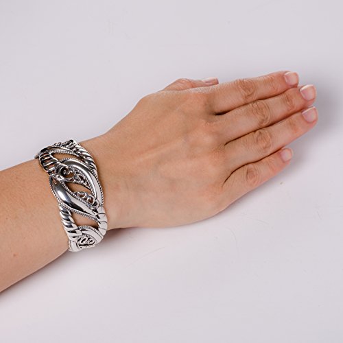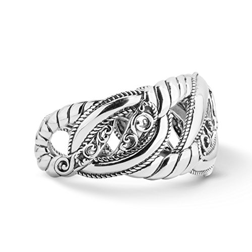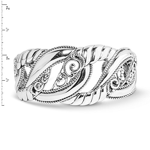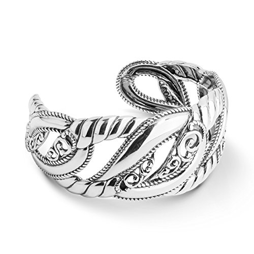 Make a statement with this intricately crafted sterling silver cuff bracelet. Open scrollwork adds a feminine touch to its bold look, adding a touch of interest to any ensemble.