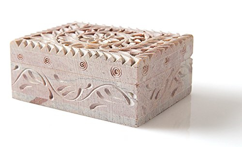 Completely handmade by expert artisans of India. Beautifully Hand Carved Jewelry Box with intricate design made by indian Artisans. Soapstone box with lid on hinges and used to store earrings, watches, rings etc.