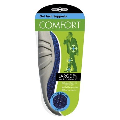 -. Binding : Health and Beauty -. Brand : Smart Shoe -. EAN : 0853091002145 -. Feature : Smart Shoe Maximum Pain Relief Gel Arch Support - Large (Trim to Fit) Men 9-12 Women 9-12 / The thin, low profile design is ideal for dress shoes and loafers. / Molded universal arch support provides comfort and support for all arch heights. / Polymer gel provides maximum comfort, shockabsorption and pain relief. -. Label : Smart Shoe -. Manufacturer : Smart Shoe -. PackageQuantity : 2 -. ProductGroup : Health and Beauty -. ProductTypeName : HEALTH_PERSONAL_CARE -. Publisher : Smart Shoe -. Studio : Smart Shoe -. Title : Smart Shoe Maximum Pain Relief Gel Arch Support - Large (Trim to Fit) Men 9-12 Women 9-12 -. UPC : 853091002145