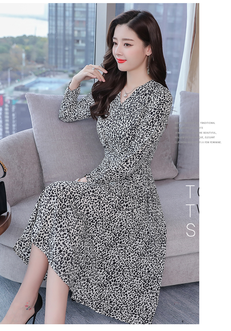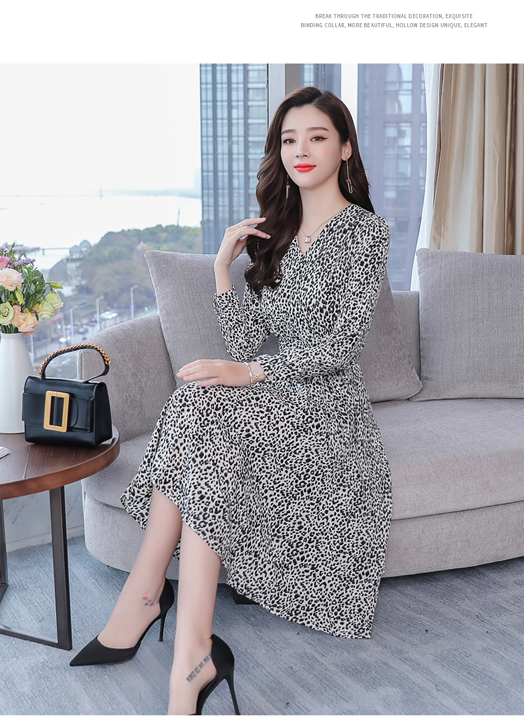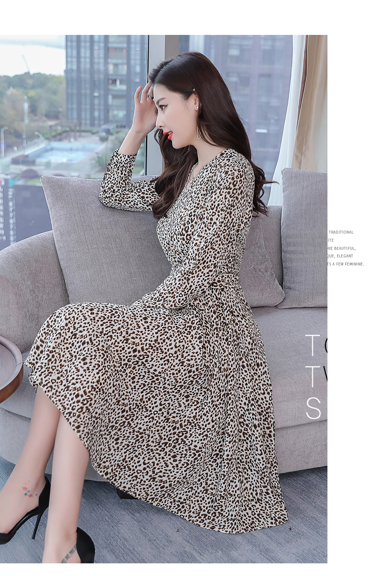 一枚でさらりと着こなせる、コーデが簡単なヒョウ柄シフォンワンピース。